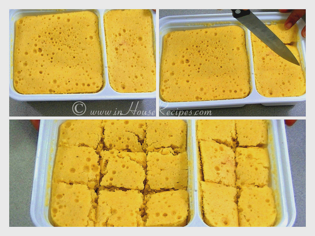 Dhokla in Idli steamer gives it the Idli shape and the name too. The process in Idli steamer remains same as we have mentioned in the pressure cooker recipe.